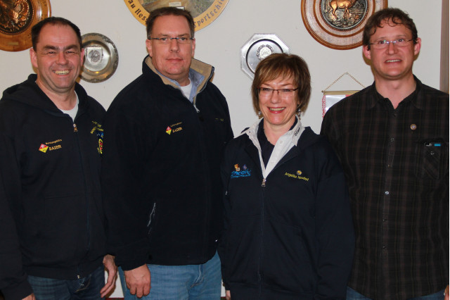 Der neue und alte geschäftsführende Vorstand der Schützengemeinschaft (v.l.n.r): Thomas Baier (1. Vorsitzender), Gerrit Kratz (2. Vorsitzender), Angelika Neudert (Schriftführerin) und Ralph Trimborn(Schatzmeister)