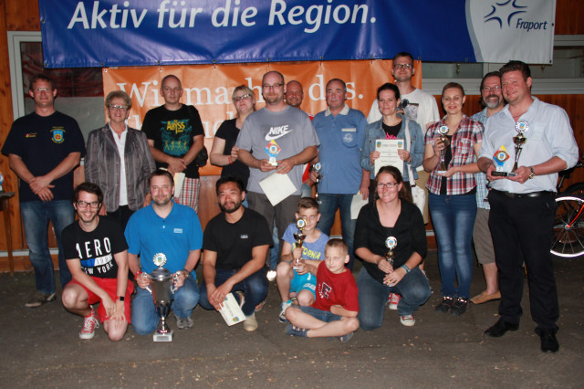 Ralph Trimborn und Erika Sickenberger (oben links) zusammen mit den Siegern nach der Pokalübergabe
