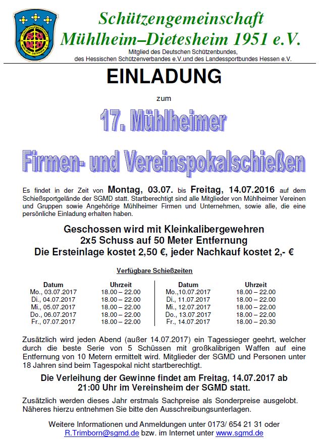 Einladung zum 17. Firmen- und Vereinspokalschießen