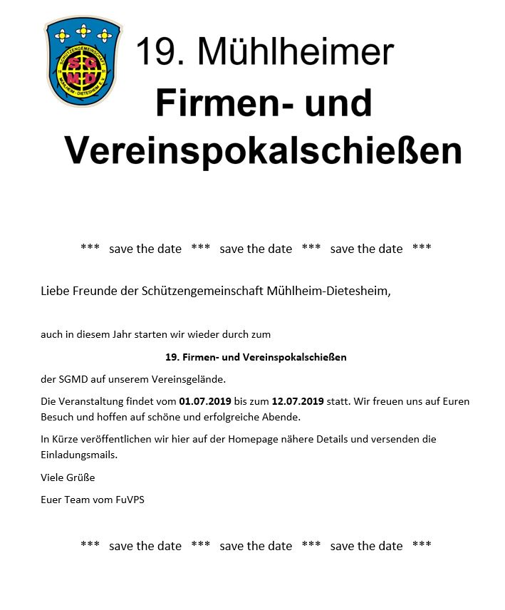 Einladung zum 19. Firmen- und Vereinspokalschießen